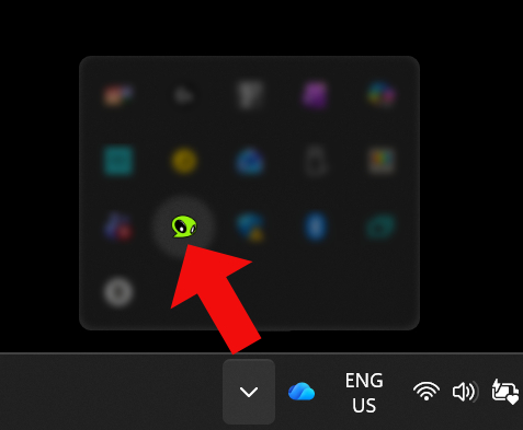 If you’re a client of ours, you can find it by clicking the little arrow on your taskbar to show the hidden icons in your system tray. Then look for the little green alien chat bubble (that I designed) and click that.